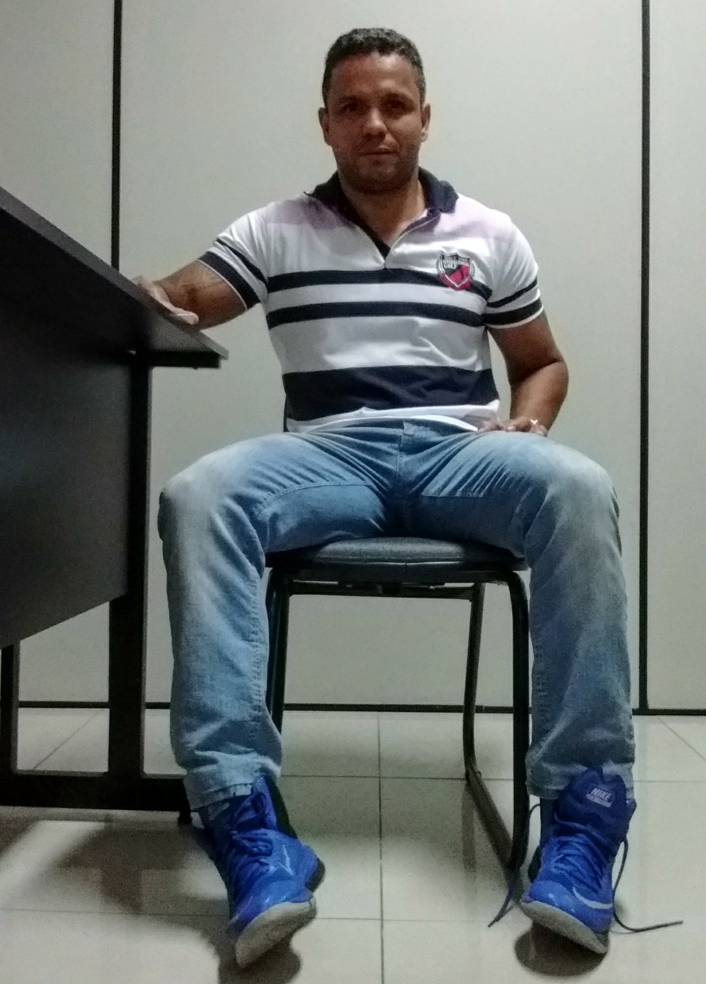 Sin camisa y con una erección, se salía. Me estaba diciendo algo